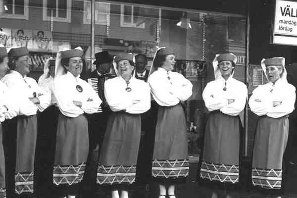 | 1990 | gjorde Björkstalaget en resa till Estland där vi var gäster vid en estnisk fjäderfågelsovchos. Denna gång gästades inte ett folkdanslag utan sovchosens damkör och den stora körfestivalen i Tallin med 600.000 deltagare/åskådare. |